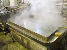 佃煮製造工場内には13の煮炊き釜があり、毎日佃煮の製造を行っております。